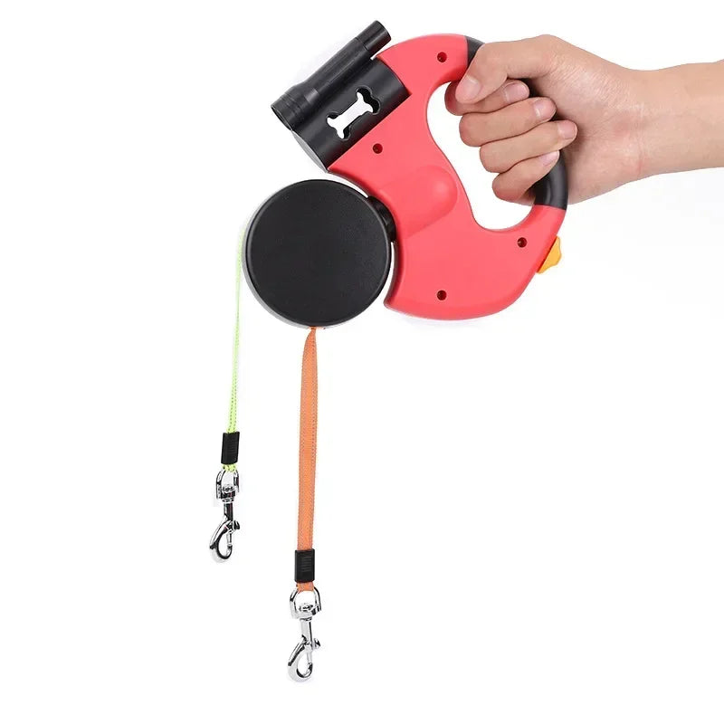 Coleira Retrátil Dupla para Cães 2 em 1 – Segurança e Praticidade!